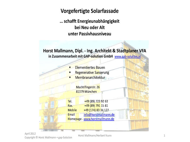 Dipl. Ing. Horst Mallmann - Architekt & Stadtplaner VFA - Solararchitektur