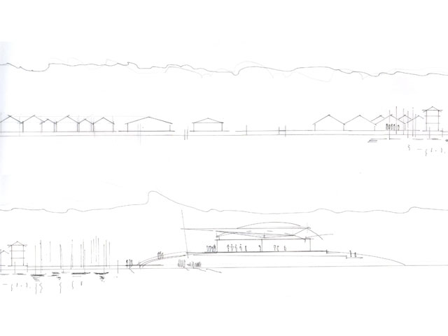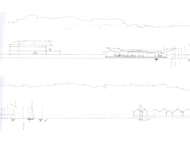 - Ein muschelförmiger Gastronomie-Pavillon zwischen Bootsverleih und Anlege-steg lässt die Stimmung ganzjährig auf dem Wasser erlebbar werden.