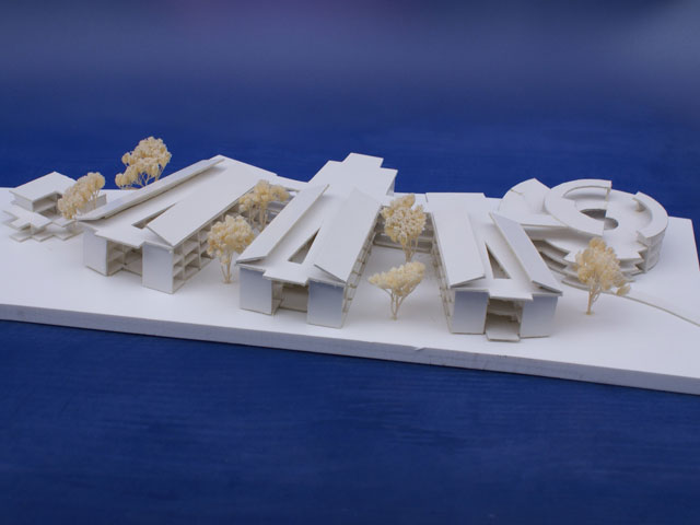 Schaffung einer unverwechselbaren Bauanlage, die sich maßstäblich in die Umgebung einbindet. Die Aufnahme der vorhanden Bau- und Grundstücksfluchten ermöglicht eine Einordnung nach allen Richtungen und schafft eine Platzraumbildung nach Süden und zu den Straßen „Wilhelm-Anger Straße“ und „Rumaerstraße“. Die Ausbildung von zwei und drei Geschossen verhindert eine massive Überlastung des Grundstückes und ermöglicht aufgrund der flächensparenden Bauweise größere zusammenhängende Grünbereiche für Bewohner und Anlieger.